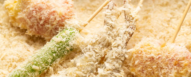 えん満の串かつは「なぜ、おいしいの。そんなお声をお客様からいただく時が、一番嬉しい時です。 当店の串カツは、40種類以上あるネタを1本1本お店で手作りしています。 手仕込みしたネタを、ご注文をいただいてから秘伝の衣をまぶし、カラッと揚げます。 あつあつをホクホク、ふぅふぅしながら召し上がってください。